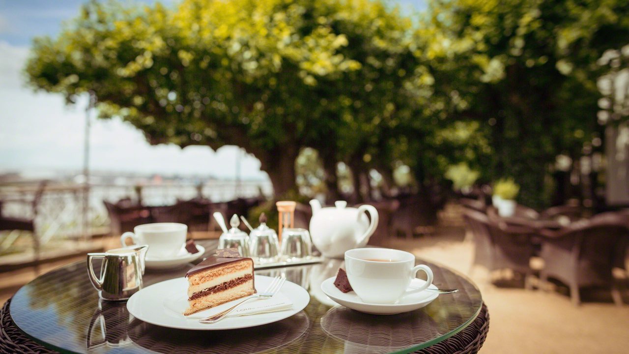 Mein Schwachpunkt, auf der historischen Lindenterrasse die weltbeste Champagnertorte genießen. Foto © Mirco Seyfert